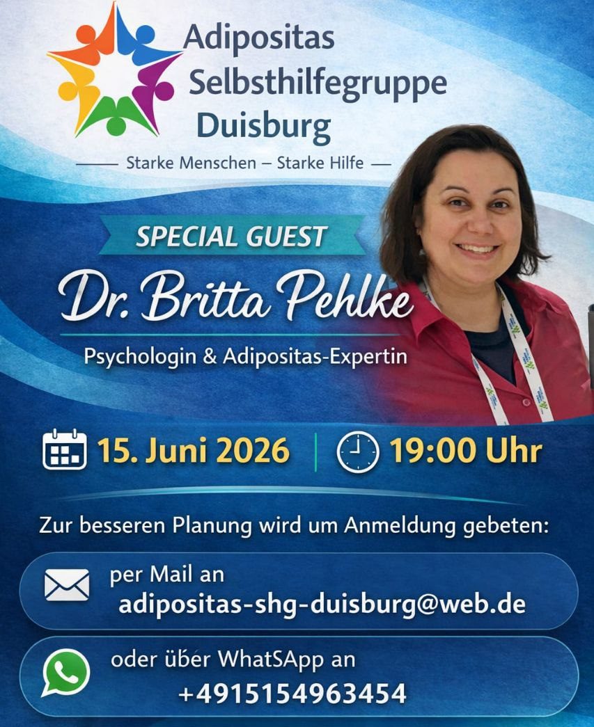 Wir freuen uns, Dr. Britta Pehlke, M.Sc. Psych., als Gast bei uns begrüßen zu dürfen. Ihre Forschung konzentriert sich auf psychologische und verhaltensbezogene Aspekte der Entstehung und Therapie von Adipositas. Ein zentraler Schwerpunkt ihrer Arbeit liegt auf der psychologischen Betreuung von Patientinnen und Patienten nach bariatrischen Eingriffen. Als klinische Wissenschaftlerin ist es ihr ein besonderes Anliegen, wissenschaftliche Erkenntnisse in die psychotherapeutische Behandlung von Menschen mit Adipositas zu integrieren.